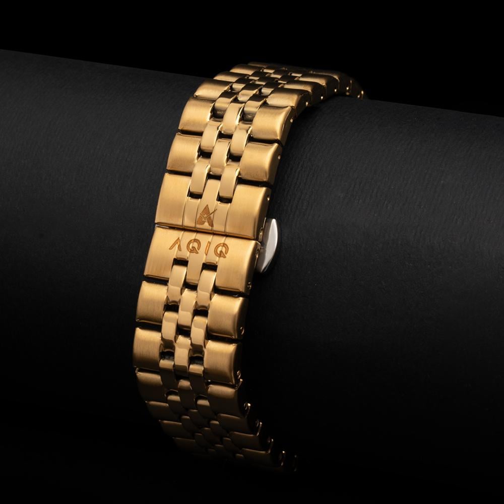 - ساعه رجالية بسير ستانلس استيل بل لون الذهبي.