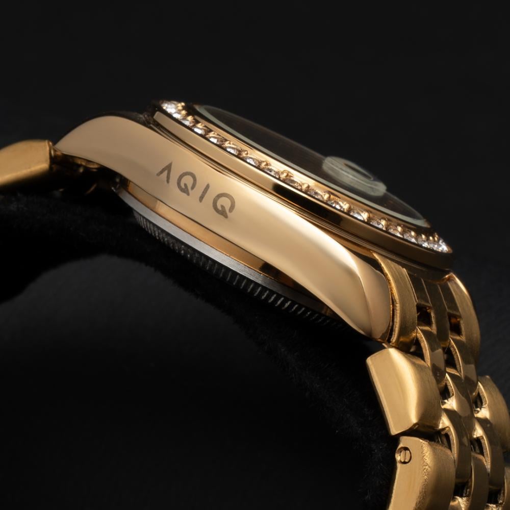 - الإطار: مرصع بأحجار براقة تمنح الساعة لمسة فاخرة.